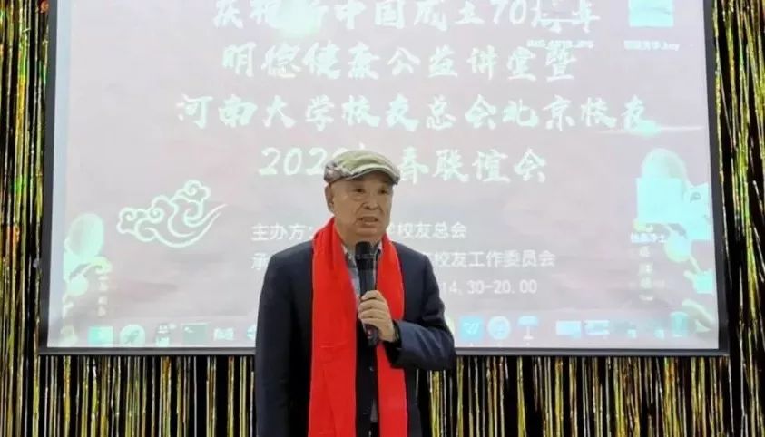 宋纯鹏代表学校和校友总会对在京校友致以美好的新年祝福,对物理分会的成立表示热烈祝贺。他充分肯定了北京校友会2019年开展的工作和取得的成绩,对北京校友为母校事业发展做出的重要贡献表示感谢。宋纯鹏指出,2019年学校坚持“一条主线、两翼齐飞、四轮驱动”的发展思路,深入落实立德树人根本任务,全面深化综合改革,强力推进内涵建设,在107年办学历史中书写了浓墨重彩的一笔。他还特意提到了12月23日发生的“西兰花活动”,给他留下了深刻印象。他希望全体校友,一如既往地关心支持河大发展,出谋划策,共同把河南大学建设得越来越好!最后,他诚邀在京校友常回母校看看,并祝全体校友新年快乐,万事如意!