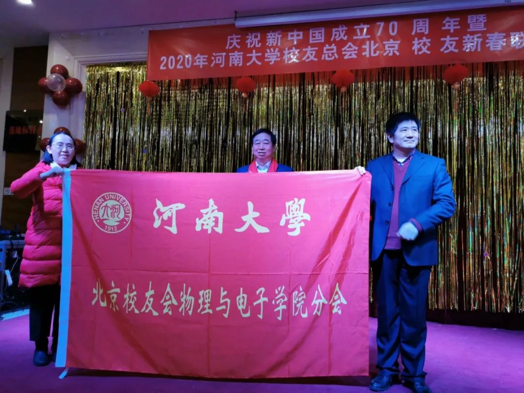 1月11日,北京校友会物理与电子学院分会成立仪式在北京校友会2020年新春联欢会上举行。校长、校友总会会长宋纯鹏,校党委常委、副校长、校友总会副会长许绍康在校长办公室、校友工作与教育发展基金会办公室负责同志陪同下出席活动北京校友会新春联欢会。物理与电子学院党委书记王宏华,物理与电子国家级实验教学示范中心副主任李国强,副院长邓浩和学院教师代表,以及在京工作、生活和学习的物理与电子学院校友代表30余人参加了成立仪式。成立仪式由北京校友会副会长陶襄萍主持。