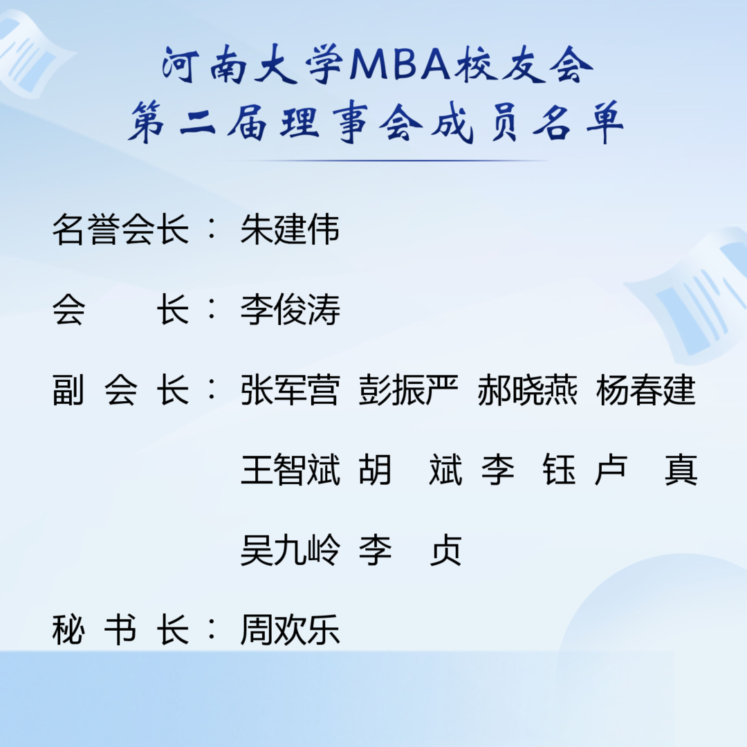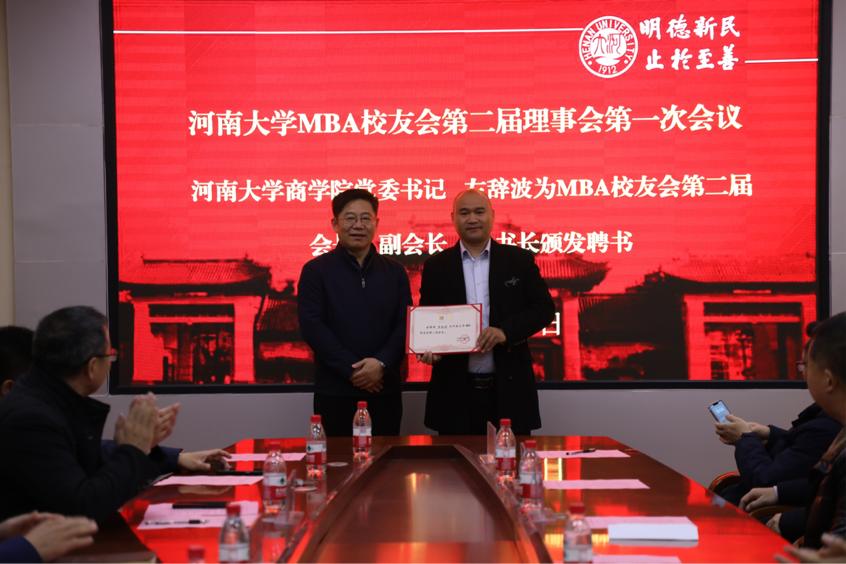 薪火相传助力MBA发展,共融共通创造河大风采。新一届MBA校友理事会成员的加入将为校友工作注入新鲜活力与智慧,切实推动河大MBA校友工作的创新、促进工商管理学科的稳定发展与壮大。此次会议的成功召开,必将为后续河大MBA校友会的工作进一步指明工作方向,奠定良好的发展基础。
