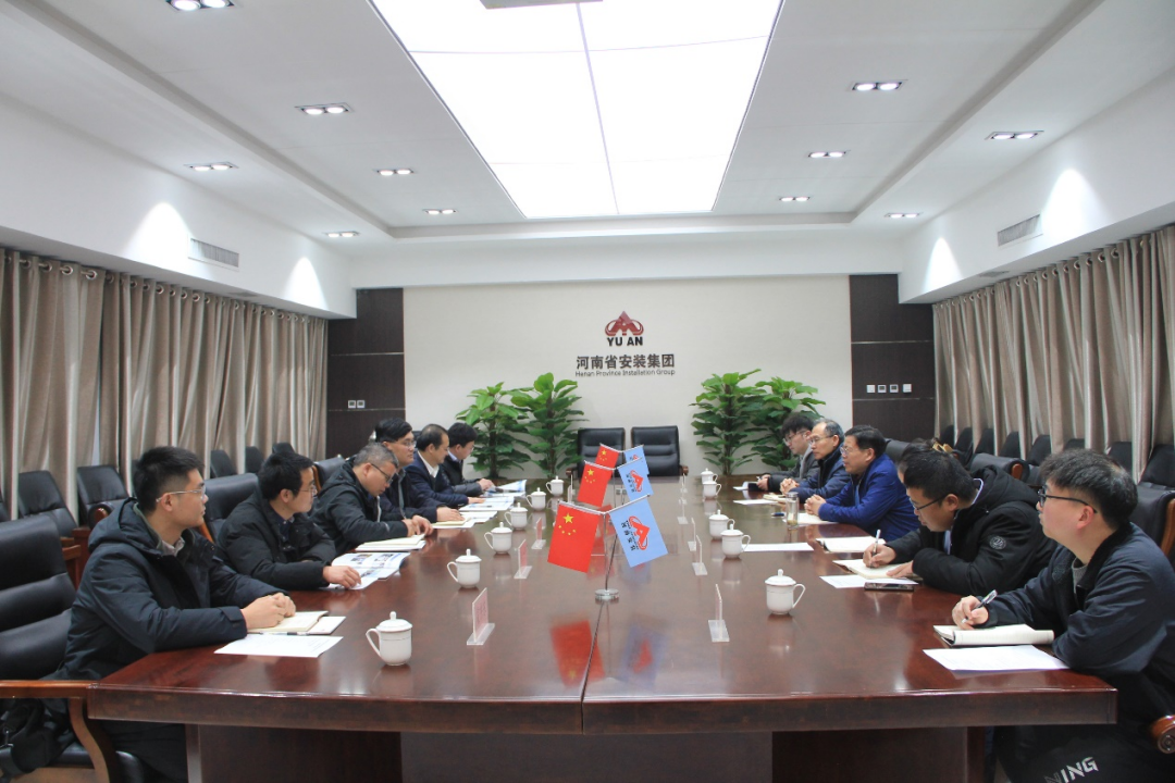 随后,曹志伟、韩小森一行来到河南省安装集团有限责任公司,受到1982级校友、河南省安装集团副总裁王致祥等公司领导的热情接待。王致祥从历史发展、经营理念、组织架构、发展战略、业务板块等方面详细介绍了安装集团的基本情况,并希望今后能够引入更多河大优秀毕业生到公司发展。曹志伟对安装集团领导的周到安排表达了感谢,详细介绍了学校及学院情况,希望双方开展多层次、多元化合作,不断探索校企合作新模式,为2024届毕业生提供更多的实习和就业机会。韩小森希望双方在产学研融合等方面保持密切联系,开展更多领域合作。