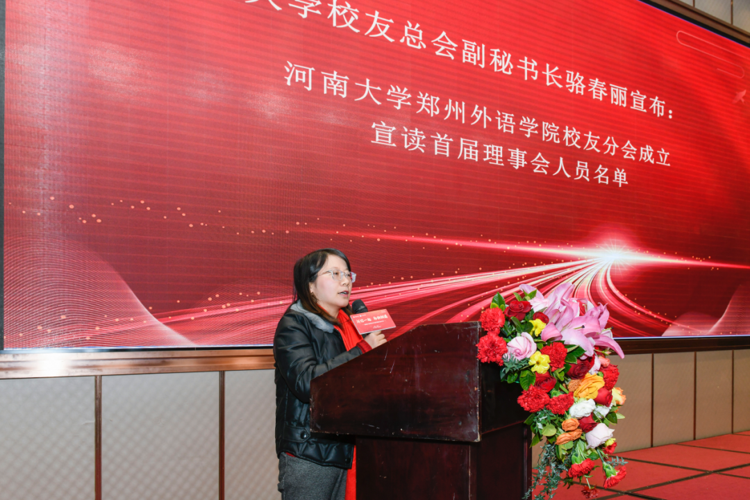 骆春丽宣布河南大学外语学院郑州校友分会正式成立,并宣布首届理事会成员名单。