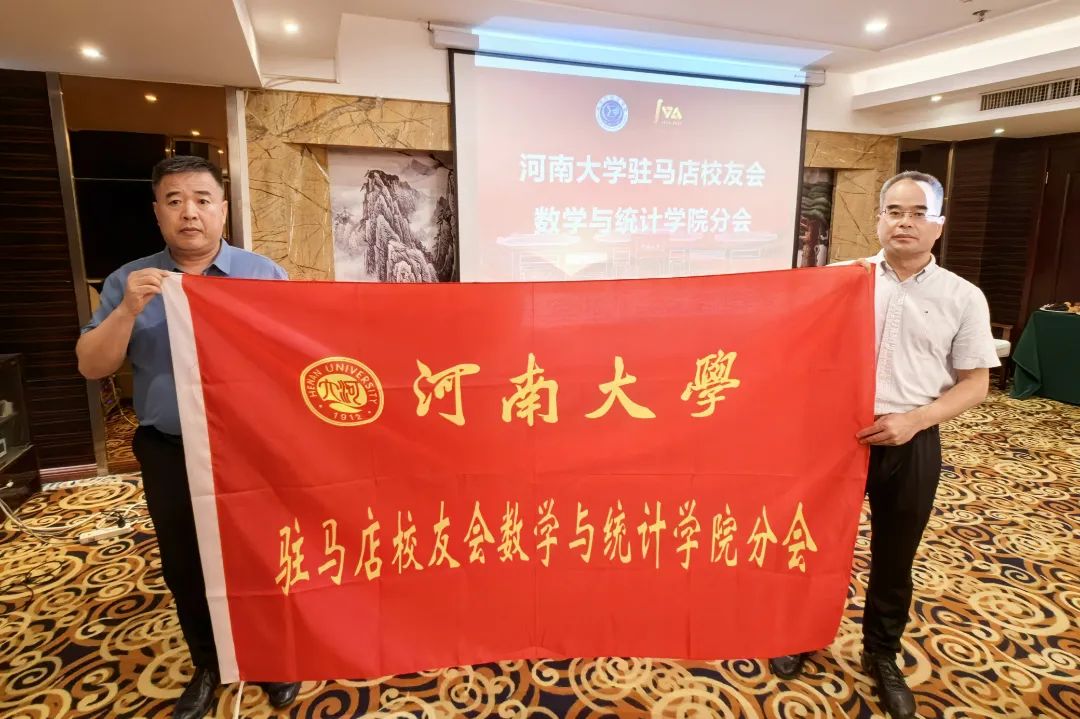 刘会军宣布河南大学驻马店校友会数学与统计学院分会成立,向分会名誉会长、会长颁发聘任证书并授旗。韩小森向分会副会长、秘书长、副秘书长等颁发证书。
