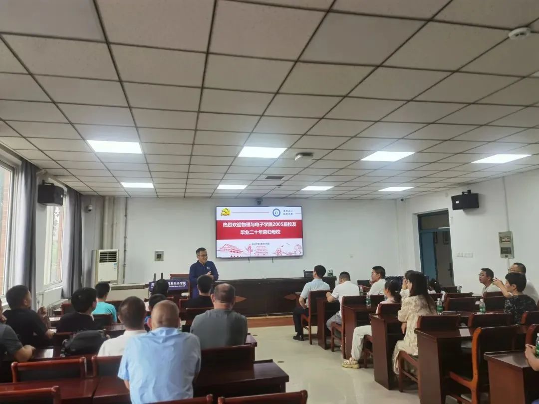 薪火相传廿载路,校友荣归话发展。近日,物理与电子学院举行2005届物理学校友毕业20周年返校联谊活动,30余名校友从全国各地重返母校,共叙同窗之谊,感念师恩之情。学院党委书记张慧、执行院长李国强、党委副书记刘寒冰、辅导员魏凌及专业课教师代表出席座谈会。