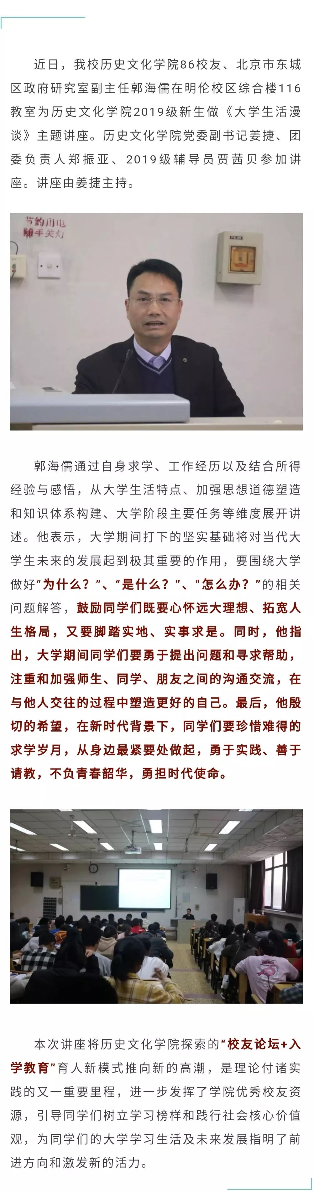 校友们回校开设讲座,传授经验,引导未来方向!