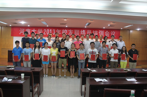教育发展基金会秘书长、校党政办副主任郭志祥宣读了《河南大学校友总会关于校友联络员的聘任决定》。曹艳等81位同学受聘为我校2013届毕业生校友联络员,与会领导为他们颁发了聘书。