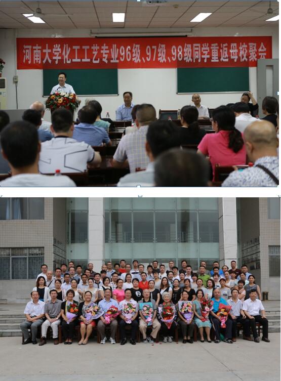 化工工艺专业及电会班96-98级近百名毕业生参加了本次聚会。座谈会结束后,全体与会师生齐聚学院大门前合影留念。