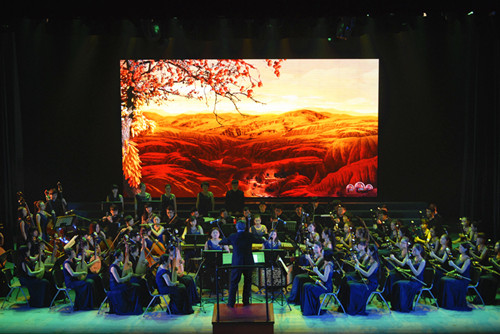 音乐会分为《“怒吼”的河大人》、《时代的唱响者》、《人民的音乐家》三个篇章,全面、客观地呈现出马可先生音乐创作的整体面貌。气势恢弘的民族管弦乐、铿锵有力的大合唱、时代色彩浓郁的歌剧……艺术学院的师生们用澎湃的乐章带领观众们共同领略时代歌者的绝代风华,感受经典作品的魅力与辉煌。一组欢快轻畅的管弦乐《陕北组曲》拉开了音乐会的序幕,优美热情的旋律奏出了甜美辽阔的陕北风光,使人们仿佛看到了陕北人民热火朝天的劳动场面。奔腾的黄河水咆哮而来,《黄河水手歌》以环回萦绕、反复咏唱的方式展现了黄河水手深沉细致的感情,犹如一首劳动人民不朽的战斗悲歌。