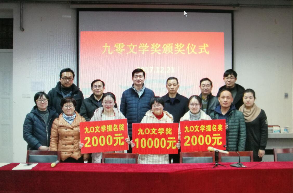 “九〇文学奖”是由中文系九〇级校友向河南大学教育发展基金会捐资50万元设立的专项奖励,每年以其利息和收益作为奖金,用于奖励文学院学子乃至河南大学所有学生的文学创作热情,促进文学发展。