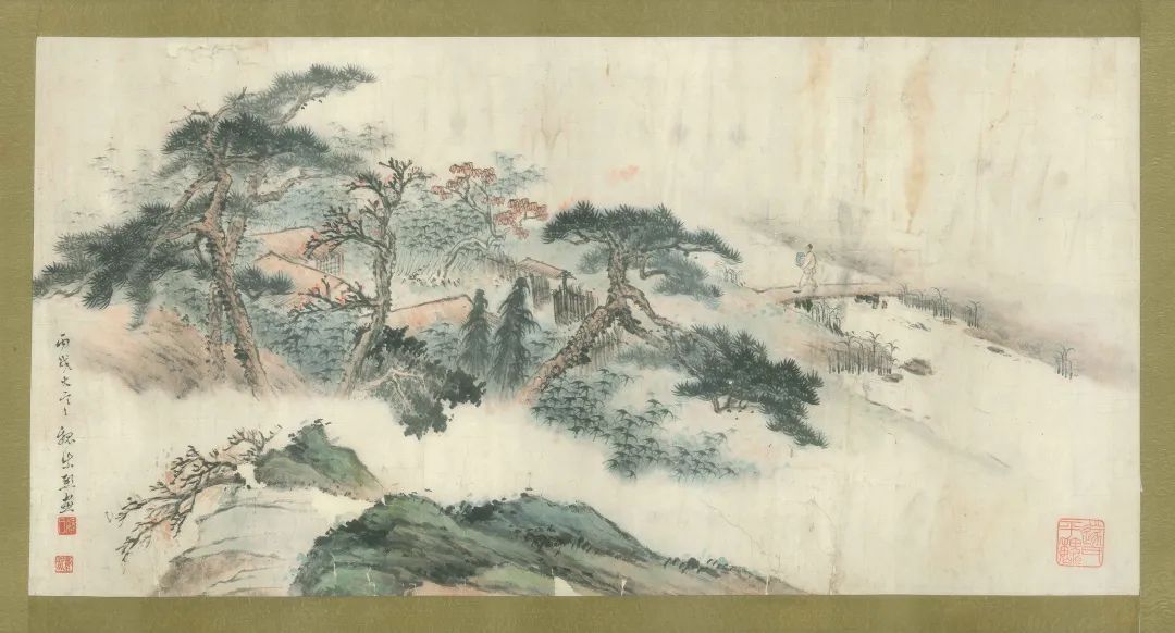 拂去经年积尘,推开泛黄长轴,展现在作者面前的是这样一幅图画:远树含烟,野郊绿皱,洄河逾岭,石髓锁道;于空谷寂寥之中,一老者双手捧托着一沓线装古书,踏着寒霜,走过河桥,叩击柴门……