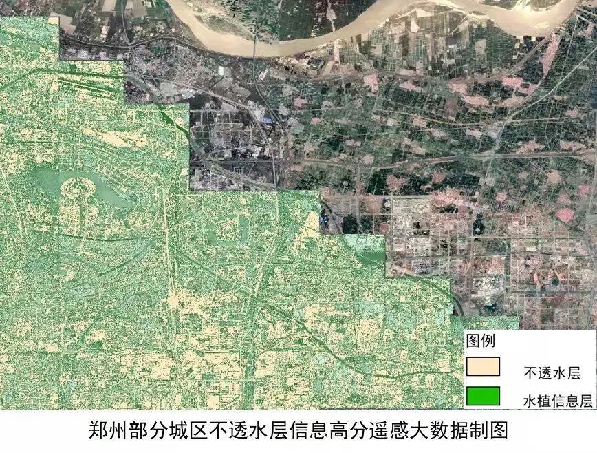 鉴于目前现有的地表覆被数据集的空间分辨率从1公里到30米不等,远远不能满足城市内涝灾害的应急需求,因此,在攻关团队夜以继日的不断攻关下,最终选取当前最高空间分辨率的亚米级遥感大数据用于郑州洪害的应急支援。团队紧急调用学院HPC高性能集群超算平台,对遥感大数据进行运算。并在不断的优化改进下,将数据空间分辨率从30米到10米,再提升为1米、亚米级,从而为充分研判郑州市洪水的流速流向等信息提供科学依据。此套数据业已成为了城市不透水层空间信息类数据的最高级别,以最大程度匹配城市洪涝灾害对空间分辨率的高标准和高要求。截至7月底,攻关团队已陆续整理出郑州市土地利用/覆盖分类、建成区不透水层、地表水体分布优化等超过300G的应急数据,并在第一时间与公众共享。当前已与中国科学院、北京师范大学等科研院所和高等院校共享成果,为郑州洪害及灾后重建提供科学数据支撑。在此批数据支撑下,攻关团队与中国科学院相关领域专家展开合作,共同撰写提交了关于防范我国城市自然灾害风险与增强城市韧性的对策建议,从技术和管理层面积极为郑州灾后重建建言献策。