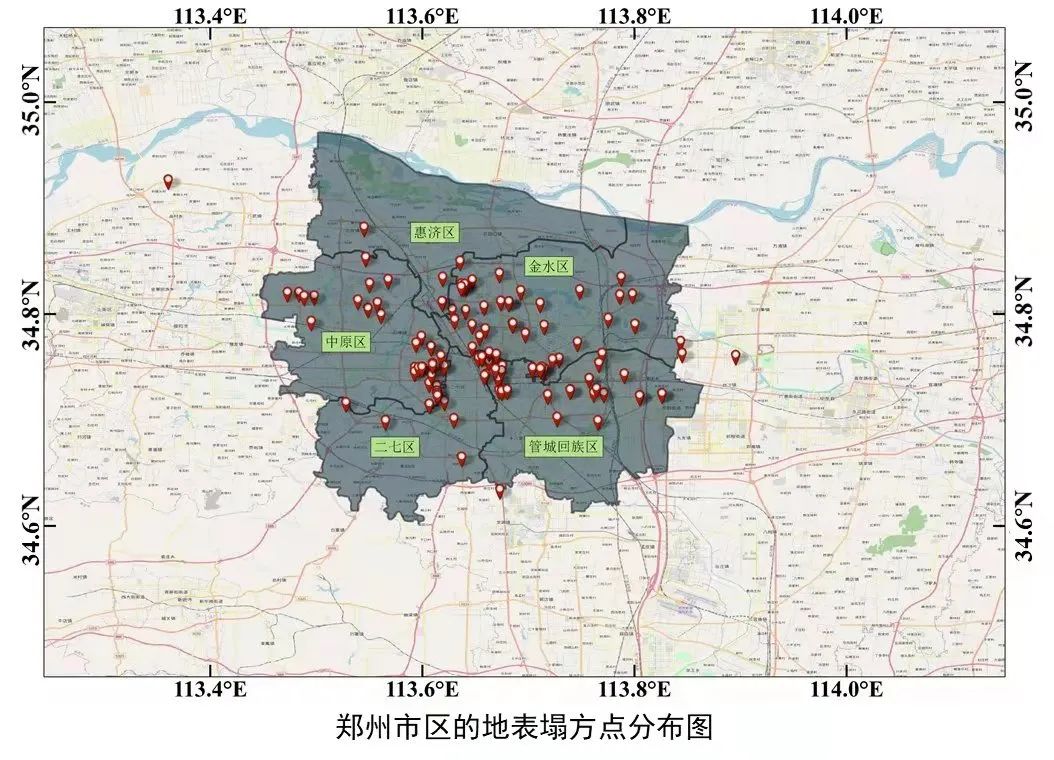 攻关团队时刻关注政府网站、新闻媒体及各大社交平台,不断优化算法,利用网络爬虫技术,对暴雨、郑州等关键字进行遍历检索。同时,借助传统历史统计数据和站点观测数据,对郑州市暴雨展开长时间序列的分析。为了及时掌握受灾位置和受灾程度,优化救援资源,应对市区复杂的地理环境,团队在第一时间为公众提供了郑州市地表积水点和塌方点的空间位置信息,并将其可视化,为洪害的救援提供便利。