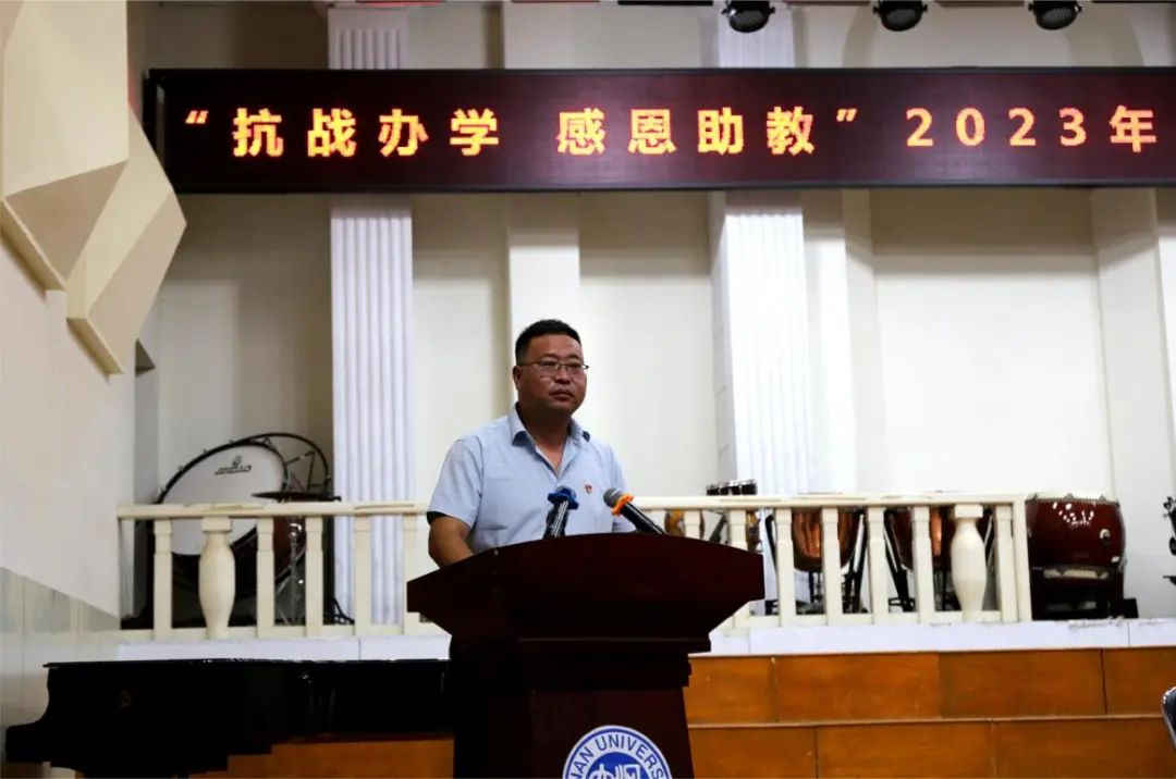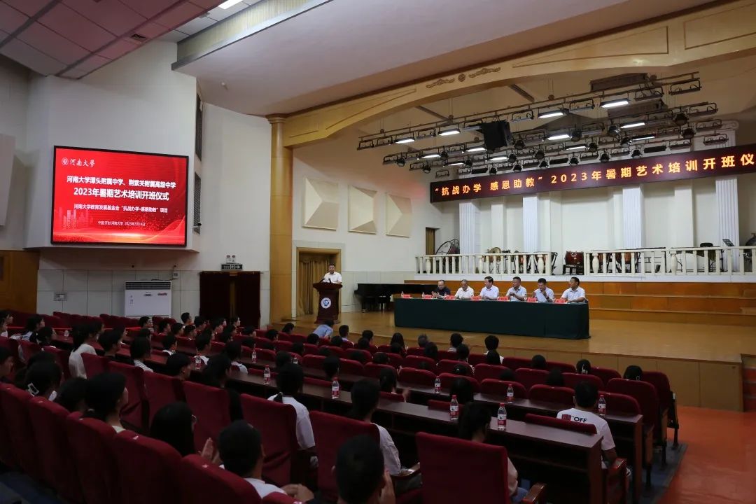 7月14日上午,“抗战办学·感恩助教”河南大学潭头附属中学、荆紫关附属高级中学第九期暑期艺术培训班开班仪式在我校明伦校区音乐学院音乐厅举行。校党委常委、副校长许绍康,潭头附属中学校长党义涛,荆紫关附属高级中学党支部副书记王新,校友工作与教育发展基金会办公室主任刘会军,音乐学院党委书记王志国,美术学院院长席卫权,后勤集团总公司副总经理徐初,音乐学院、美术学院授课教师代表、两所附属中学带队教师和参加培训的学生共同参加了开班仪式。仪式由刘会军主持。