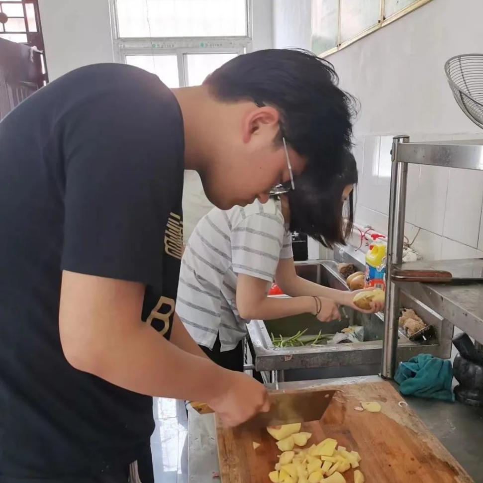 2021级王念鑫来支教前从未下过厨房,但为了分担做饭的任务,他一度包揽了择菜的工作,并仔细观摩其他同学炒菜的步骤与调料的配比。在大家的鼓励下,他终于在第二周站上了“值班主厨”的位置。