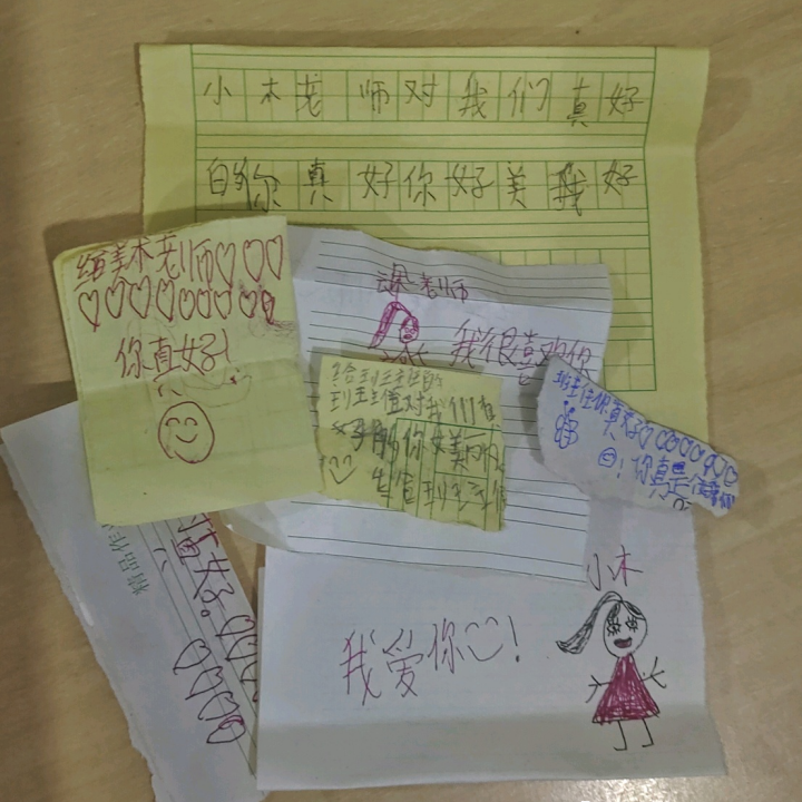 每次课间休息,他们还会偷偷塞给志愿者老师们各色纸条与卡片,用稚嫩的笔触与真挚的赞美抒发自己对老师的喜爱。他们也会大方地与志愿者分享自己喜爱的小零食,他们或害羞或开朗,但都会异口同声地邀请志愿者一起品尝。