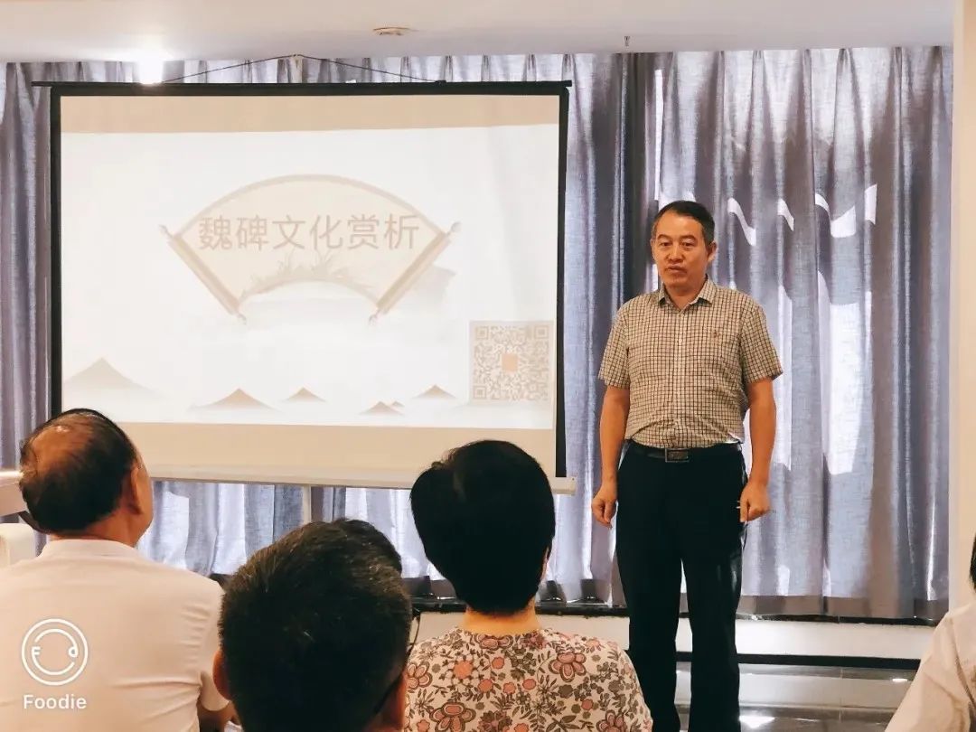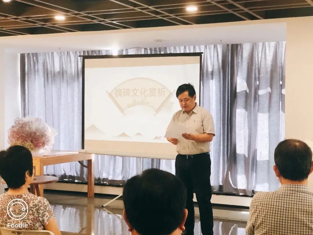 中国书法家协会会员、中国职工书法家协会理事、中国人民大学河南校友会商学院分会副会长舒洛建,论著有《入碑随笔——龙门魏刻六十品》。活动中,舒洛建为大家进行了一场魏碑艺术分享课,生动细致地讲述了魏碑的前世与今生。活动现场互动频频,交流不断。中国职工书法家协会副会长、秘书长席念平在点评时说,魏碑书法雄浑厚重,能够代表国人风骨,也希望越多越多的人体会到魏碑的艺术价值。