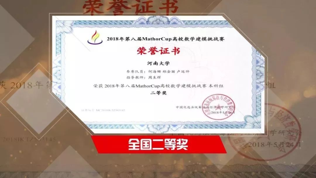 2018年度河南大学大学生数学建模竞赛校级一等奖